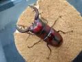 太い大アゴと黒から赤色のボディが特徴のクワガタです。