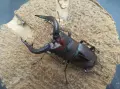 大きく湾曲した大アゴと綺麗な紅色をしたクワガタです。