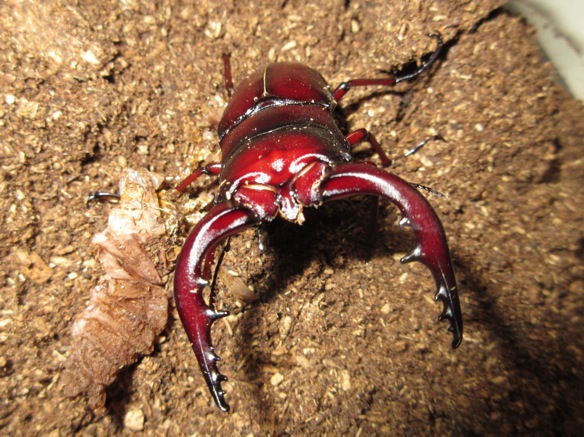 羽化までに少し時間が掛かってしまいましたが2本目に菌糸ビンを与えると少し早く羽化すると思います。
