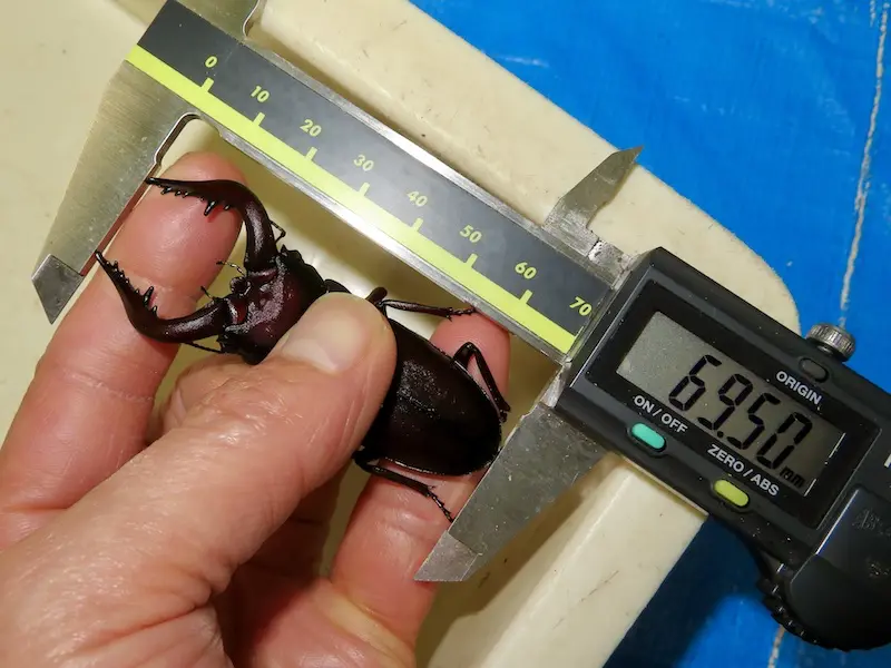 こちらも10月最新羽化のクロシマノコギリクワガタの水牛66ミリの体が太い個体です。
