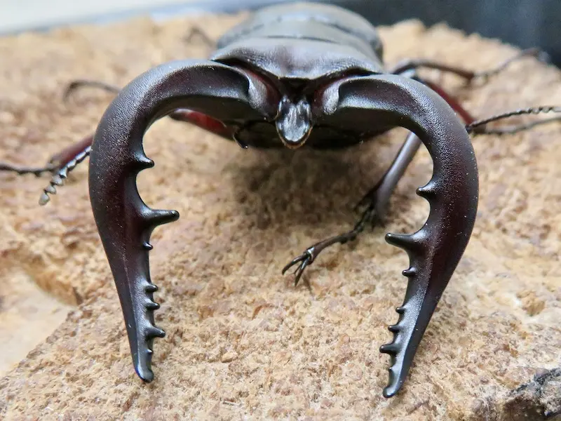 ※最初に紹介したヤクシマノコギリよりも明らかに大アゴが直線的(リーチが長い)で胴体もスリムなので大型個体が羽化しやすいのも事実です。