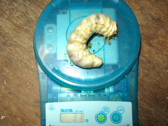 国産オオクワガタ幼虫の菌糸ビン交換の様子(30グラムオーバー)